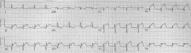 Несколько лет спустя она поступила с болями в сердце и тахикардией, и у нее была обнаружена новая фибрилляция предсердий с частым ритмом желудочков. Предыдущий визит, видимо, не был замечен.