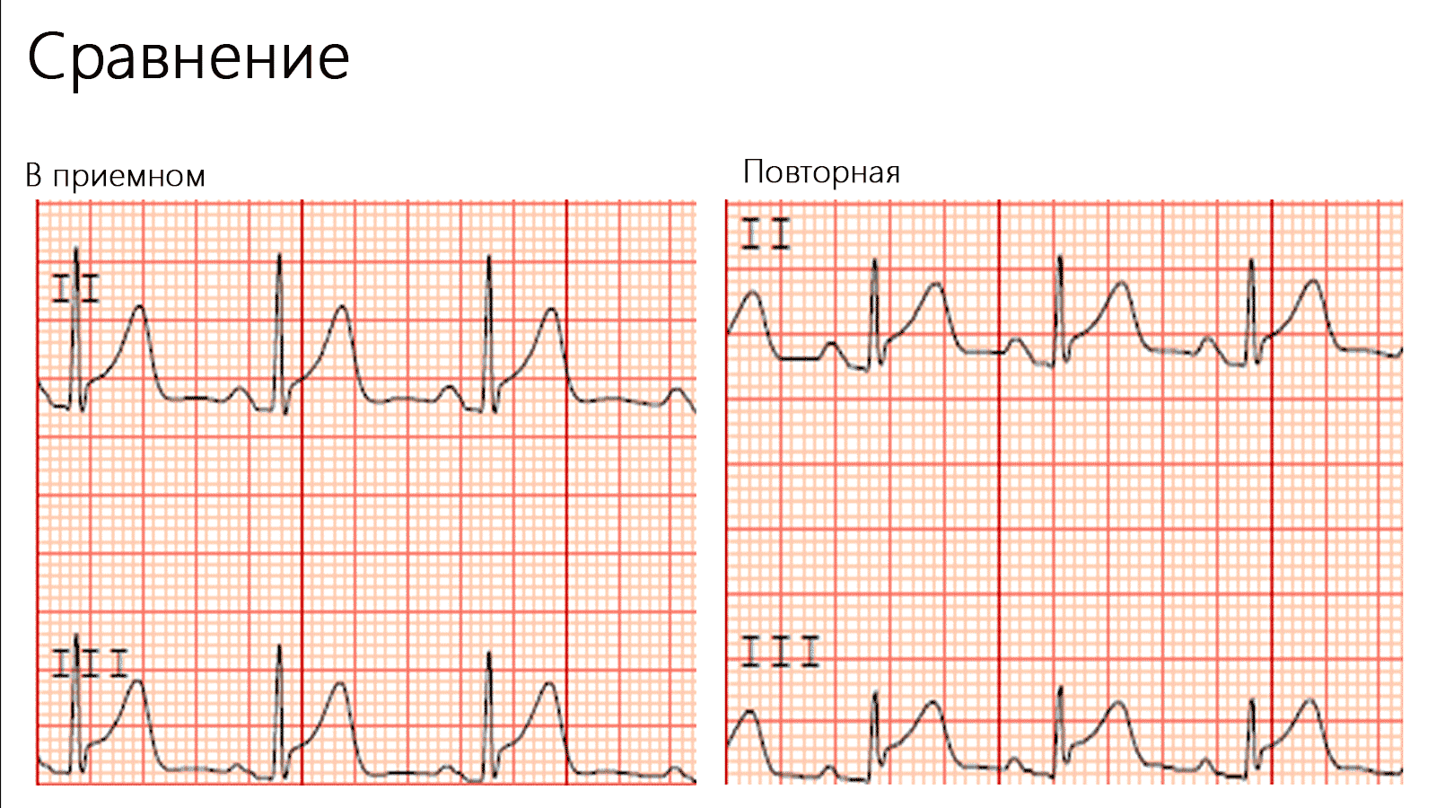 Параллельное сравнение отведений II и III на первых двух ЭКГ в клинике: